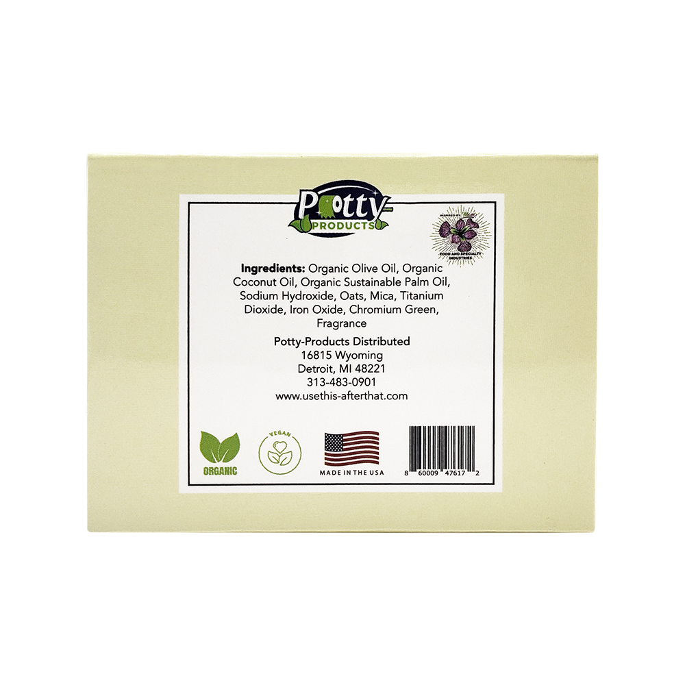 Ingredients: Organic olive oil, goat milk, organic coconut oil, organic & sustainable palm oil, sodium hydroxide, oatmeal, mineral pigments, cosmetic mica, fragrance.