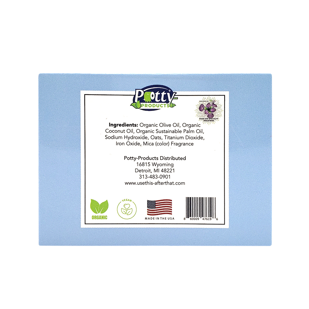 Ingredients: Organic olive oil, goat milk, organic coconut oil, organic & sustainable palm oil, sodium hydroxide, oatmeal, mineral pigments, cosmetic mica, fragrance.
